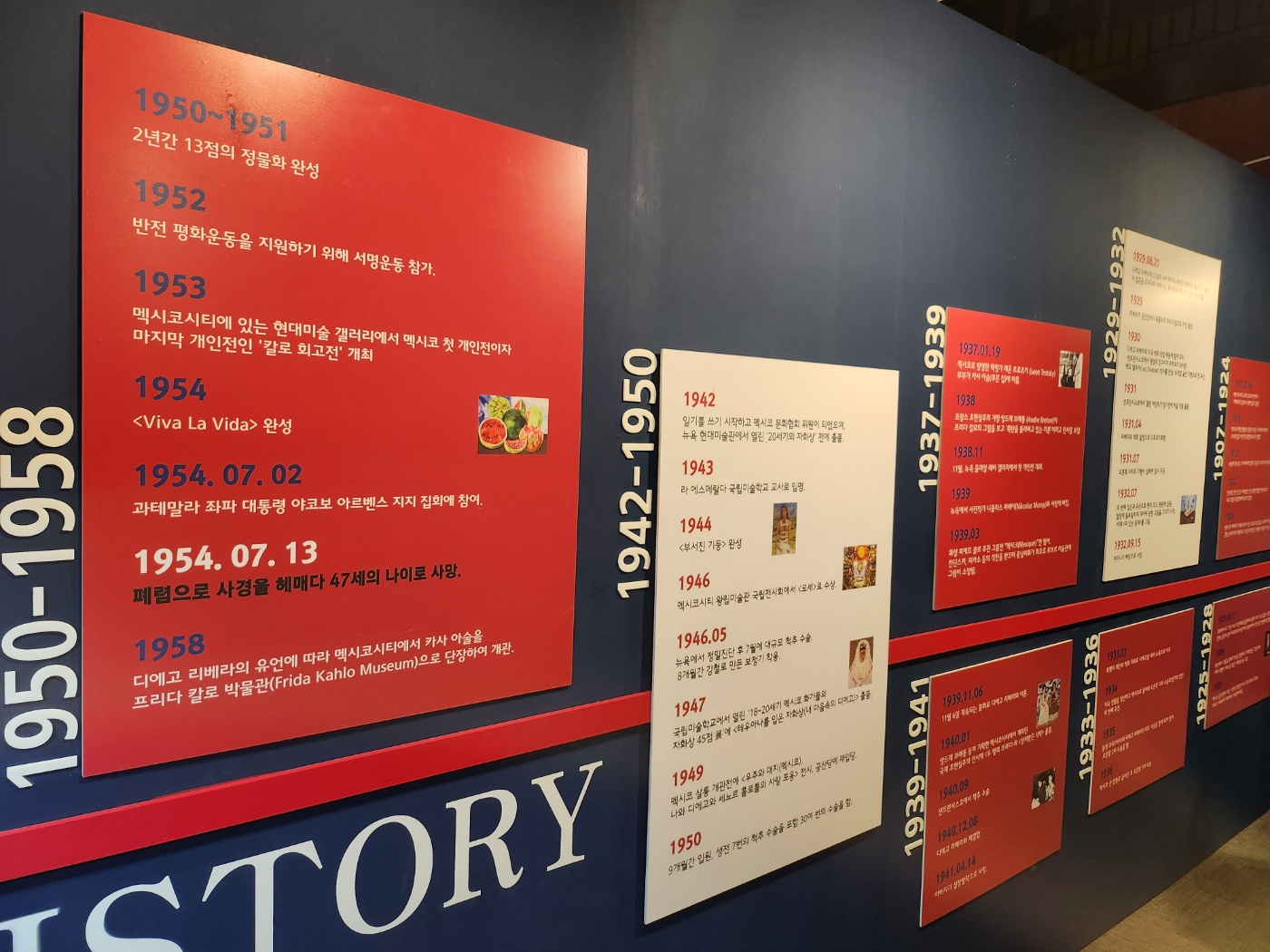 프리다 칼로 사진전이 삼성역 코엑스 현대백화점 10층 문화홀에서 열렸습니다. 주말이라 손님이 너무 많아서 바로 들어갈 수가 없어서 20분 정도 기다렸다가 입장했습니다. 도슨트 신청하려고 했는데 3시쯤 만석이라고 해서 그냥 들어갔는데 사진전 방이 좁아서 앞에 있는 도슨트 설명 다 들을 수 있었고 충분히 볼 수 있었어요 듣는 동안 Frida Kahlo에 대한 이야기.