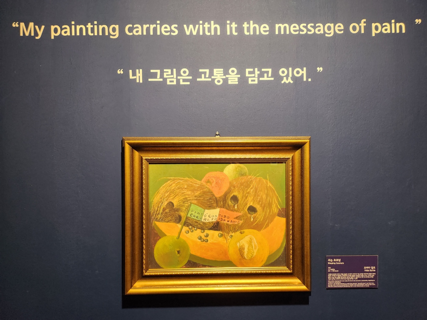 마약성 진통제를 복용하지 않을 때는 깨어 있는 모든 순간이 고통으로 가득했고, 그녀는 자신의 고통을 그림으로 표현했다. 몸을 지탱하는 단단한 코르셋 없이는 움직이기 어려웠다고 하는데, 그런 상황 속에서 수많은 작품을 그렸던 그녀에게 예술은 단순한 그림이 아니었던 것 같다. 삶의 절박한 외침과 그것을 지탱하는 가장 높은 기둥이 아니었을까?