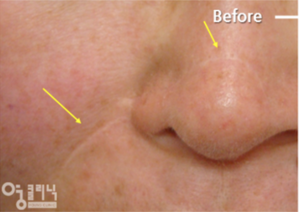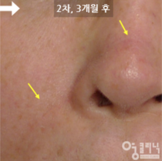 마이크로니들링 치료는 이렇게 시작되었는데 먼저 고수침으로 흉터를 피부 깊숙이 찔러 유착을 제거한 후 피부를 메웠다고 합니다. 출혈은 없었지만 멍 위에 새로운 살이 자라고 있어 일주일 정도 지나면 금방 옅어집니다. 한의원에서의 시술은 일반적인 프락셀과 달리 프락셀 시술 후에는 피부 전체가 붉어지고 따끔거리지만 미세주사 후에는 그 부위만 약간의 멍이 들게 됩니다. 물론 표면적인 흉터를 제거하기 위해 한방필링을 했고 피부 전체에 약간의 붉은기가 있었지만 재생되면서 피부가 금세 가라앉았습니다.