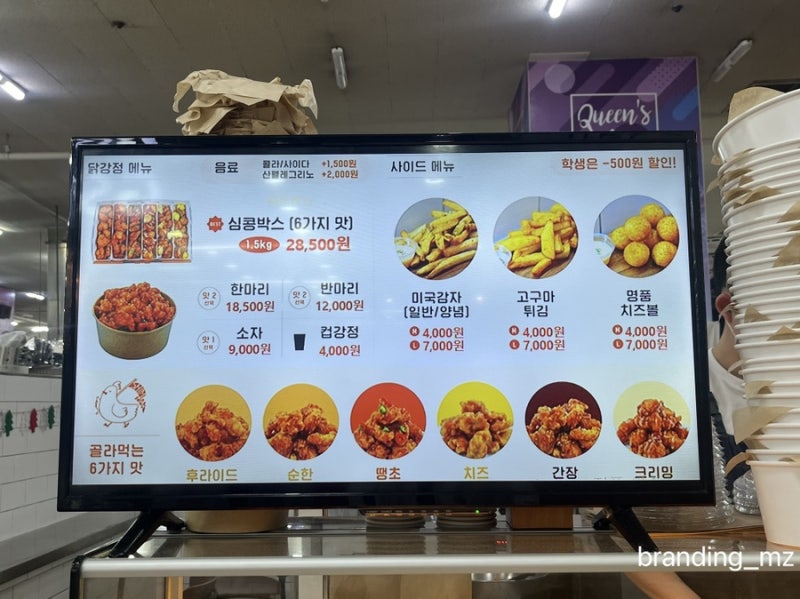 주위에 치킨가게는 많지만,의외로 닭강정 파는 곳은 그리 많지 않더라구요.게다가 주말 오전부터 문여는 곳 찾기는더더더더 어려움..ㅜ일찍 오픈하고,후기가 꽤 좋은 창원닭강정 가게를 발견해서소풍 나가기 전에 후딱 다녀왔어요~ #창원닭강정 #상남동닭강정 #심닭콩닭 심닭콩닭#창원닭강정 #상남동치킨 창원 닭강정맛집, 심닭콩닭은성원주상가 건물 지하 1층에 위치해있어요.성원주상가 is 성원그랜드쇼핑 임.대동백화점 맞은편 건물 주차는성원주상가 건물주차장에 편하게 하면 된답니다.30분 무료/ 추가 10분당 300원심닭콩닭 방문시 2시간 무료주차 등록 요쪽 출입구로 들어갔는데,지하 1층 내려가니바로 앞에 가게가 보여서 ‘럭키다~’ 싶었지용^^ GS더프레쉬 마트 바로 앞.치맥ㆍ치쏘를 위한 서사의 시작인건가???^^ 실제로 닭강정 주문해놓고,슬쩌기 마트 한번 둘러보러 들어갔다가~쏘주 계산하고 온.. 나란 녀자;;; 귀여운 캐릭터가 그려진깔끔한 심닭콩닭 로고가 눈에 쏙! 들어와요. 엇! 자세히 보니가게 옆에 BAR형태의 자리도 마련되어 있네~잠깐 앉아서 기다릴만한 공간도 있어서 굿. 반마리 (400g) 13,000원한마리 (800g) 19,500원두마리 (1.5kg) 30,000원컵강정 3,000원소자(小) 8,500원—————————————–미국감자(M/L) 4,000원/7,000원고구마튀김(M/L) 4,000원/7,000원명품치즈볼(M/L) 4,500원/8,500원 메뉴는 간단하게닭강정과 사이드 후라이드류로 구성되어 있음.사이즈만 선택하면 되네요. 닭강정 모형도 있어서 고르기 편했어요. Previous imageNext image반마리 (400g) —> 한마리 (800g) —> 두마리 (1.5kg) 저희는 여러가지 소스를 한번에 맛볼 수 있는닭강정 한마리를 선택했는데,소스 종류는 따로 선택하는 건 아니라고 해여~후라이드/순한/땡초/치즈/간장/크리밍6가지 소스맛을 골고루 맛봐야겠어요 🙂 현금결제시, 천원할인 해주니깐 해택도 챙기기.반마리/한마리/두마리 구매에 한함. ♡심닭콩닭♡당일 들어온 신선한 국내산 냉장닭정직한 기름직접 만든 강정소스직접 까서 볶은 땅콩토핑말로만 ‘직접 만든’이 아니고~찐찐!!직접 손질하고, 볶고, 제조한 재료들이랍니다 🙂 애들 음료수사러 GS마트 잠깐 갔다오니깐곰새 준비되어있더라구요~사장님, 모야×모야~~^^빨간리본 모야×모야~~^^치킨 선물이라도 받은 거 같잖아요~기분 좋구로♡ㅎㅎ 감사합니다~ 기다릴 애들 생각에 서둘러 집에 왔더니,엄마한테서 맛있는 냄새 난다고~어서 열어보라고~~ 난리난 녀석들;;;어째 나보다 닭강정을 더 기다린거 같은쎄한 느낌.. 원래는 공원가서 먹을 계획이었는데~배고프다고 난리난 애들 때문에 오픈했어요^^ 광고 후 계속됩니다. 다음 subject author 취소 창원닭강정 성원주상가 맛집 심닭콩닭/ 내맘대로 골라먹는 6가지맛 닭강정 재생 1 좋아요 0 좋아요 공유 하기 0:00:00 재생 음소거 00:00 00:16 실시간 설정 전체 화면 해상도 자동 480p 자막 사용 안함 재생 속도 1.0x (기본) 해상도 자동 (480p) 1080p HD 720p HD 480p 270p 144p 자막 설정 사용 안함 옵션 글자 크기 배경색 재생 속도 0.5x 1.0x (기본) 1.5x 2.0x 알 수 없는 오류가 발생했습니다. 도움말 음소거 상태입니다. 도움말 라이센스 고화질 재생이 가능한 영상입니다.설정에서 해상도를 변경해보세요. 더 알아보기 0:00:00 창원닭강정 성원주상가 맛집 심닭콩닭/ 내맘대로 골라먹는 6가지맛 닭강정 6열로 가지런히 누워있는 닭강정들♡ 박스 열기전부터 맛있는 냄새가 솔솔 풍겨서침샘이 열일하기 시작했는데,박스 오픈하고나니맛깔나는 비쥬얼 덕분에 침샘 대폭발!!!! ‘후라이드/땡초/치즈/크리밍/순한/간장’6가지 맛의 심닭콩닭의 닭강정 한마리♡다른듯~ 비슷한듯~다양한 매력을 뽐내는 맛쟁이들이예요ㅎㅎ 치킨 비쥬얼을 카메라에 다 담기도 전에,닭강정 위를 날라다니는 포크들ㅋ 우리 애들 밥 잘먹는다고 오해하실라;;;;입짧기로 유명한 아이들이랍니다.맛없는 건, 맛없다 말안하고 수저조차 안드는^^;;;근데, 심닭콩닭의 닭강정은진!!짜!!! 맛있게 잘 먹더라구요~~ 첫째의 원픽은 크리밍.둘째의 원픽은 순한.둘다 붉은색 소스였지만,아이들 먹기에도 맵지않고 달콤하니 맛나욤. 간장이랑 치즈 닭강정.소스가 묽어서 치킨 구석구석~ 쏙쏙!!맛있는 맛들이 침투해있어요^^순살닭강정이라 하나씩 집어먹으니 간편하고,국내산 냉장육에다가 고기도 텁텁하지 않아서입에 넣는 순간부터 삼킬때까지 대만족 땡초가 송송 썰어져있는 땡초소스는맵지만 맛나지용~♡ 6가지 소스 모두 호불호없이 맛나는 맛.’나는 치킨 별로다..’하시는 분들도, 분명 이 중에 한가지는 “맛있다!”하실거라고 확신합니다^^소스 선택의 폭이 넓어서 더 좋은 심닭콩닭 고구마도 달달하고 부드러워♡갓튀긴 고구마튀김은 을~매~나 맛있을까??담엔 사자마자 꺼내먹어야징^^ 고구마튀김 & 떡사리 깔끔하게 클리어.푸짐한 양 덕분에 온가족 든든하게 먹었네요~ 가성비 맛집, 심닭콩닭.나들이 포장메뉴로 완전 강츄츄!!상남동닭강정 심닭콩닭50m NAVER Corp.더보기 /OpenStreetMap지도 데이터x NAVER Corp. /OpenStreetMap지도 컨트롤러 범례부동산거리읍,면,동시,군,구시,도국가심닭콩닭경상남도 창원시 성산구 동산로 124 성원그랜드쇼핑 지하1층 26호 심