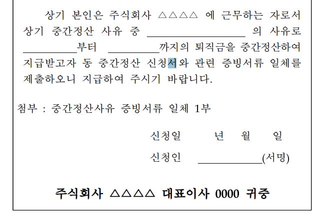 다음으로 퇴직금 가정산 사유에 대해 알아보겠습니다!근로자퇴직급여및보장법시행령 제3조에 의거 퇴직금 가정산 가능 사유를 나열하였습니다. **주택분양② 무주택자가 보증금 또는 보증금을 내는 경우. ** 보증금 보증금 또는 월세 보증금(1사 직원당 1회에 한함) 무주택자 본인 명의로 주택 구입 임시 보증금 등이 필요한 경우 정산 가능 단, 배우자 명의로 주택을 구입하는 경우에는 할 수 없으며, 공동 명의로 된 경우에는 가능합니다. 본인의 질병 또는 부상으로 인한 근로자의 의료비가 근로자의 연간 총급여의 12.5%를 초과하는 경우. ** 근로자 본인, 근로자 배우자 또는 배우자 가족이 6개월 이상 요양을 요하는 경우 ④ 근로자가 파산선고를 받고 퇴직금 지급일로부터 5년 이내의 개인회생절차 개시가 결정된 경우 . 그러나 개별 운동 또는 무료 운동은 임시 청구에 포함되지 않습니다. 임금피크제 및 근로시간 단축 퇴직금은 근로자의 직전 3개월 평균 급여를 기준으로 산정하므로 임금피크제 또는 근로시간 단축으로 임금이 삭감될 우려가 있는 경우 , 퇴직금 ⑥ 영향을 받는 사항은 고용노동부장관이 정하여 그 사정을 고시한다. 사망, 실종 또는 15일 이상 입원. 필요한 경우. 퇴직금 일시정산사유요약! 퇴직금 중간정산에 필요한 서류 퇴직금 중간정산을 위한 서류는 주택매매, 상속 및 월세 보증금, 파산, 개인회생절차 개시 등에 따라 다르므로 반드시 확인하시기 바랍니다. 노숙자매입, 보증금, 전세보증금, 민·형사상 책임진술서의 내용을 포함한 퇴직금중도금, 지급계좌, 신청기한, 징수, 중도정산 등 퇴직금중도금에 관한 서류 기타의 경우 회사 재산에 손실이 발생한 경우 신청서 샘플을 첨부하여 신청자의 필요와 상황에 따라 수정하여 사용할 수 있습니다. 연금중도청산신청서에는 기본적으로 민·형사상의 책임을 약정하는 내용, 지급금액, 지급일자 등, 그 신청으로 인하여 회사의 재산에 기타 손실이 발생하였거나 기타 손실이 발생한 경우의 영수증 또는 일시정산이 포함됩니다. 첨부파일 다운로드 퇴직금가정산신청서.docx 파일 내 컴퓨터에 저장 네이버 MYBOX에 저장 퇴직금 계산기로 퇴직금 미리 계산하기! 미리 퇴직금을 계산해 보는 것도 재미있을 것 같다는 생각이 들었습니다. 물론 정확한 금액은 회사에 확인해야 합니다. ** Working Days, Duration Calculator (재직기간과 근속연수를 확인하여 퇴직금 계산) 반갑습니다, 네. 오늘은 우리가 이 회사에 얼마나 오래 있었는지 확인하기 위해 근무일수와 근무주기를 세어봅시다. blog.naver.com 오늘은 임시퇴직연금을 받기 위해 필요한 사유와 서류, 신청서류에 대해 알아보겠습니다. 퇴직연금 중간 정산에 대해 잘 모르는 이유 중 하나는 주택 구입, 임대 또는 보증금 지불이 매월 가능하기 때문입니다. 또한 임금피크제나 근로시간 단축 등으로 임금을 삭감할 계획이 있는 사람들은 선불로 돈을 버는 것이 더 많은 돈을 벌 수 있는 방법이다. . 퇴직금은 직전 3개월 급여를 기준으로 산정하기 때문입니다. 오늘도 읽어주셔서 감사합니다! ,예. 올해 최저임금은 작년보다 7%정도 올랐는데 실제로는 CPI가 7.7%나 올랐네요… blog.naver.com 서이추 항상 공감댓글 감사합니다