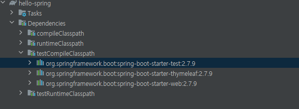 처음 프로젝트를 생성했을 때 가져온 라이브러리 2개와 자동으로 가져온 테스트 라이브러리 3개가 있었습니다.