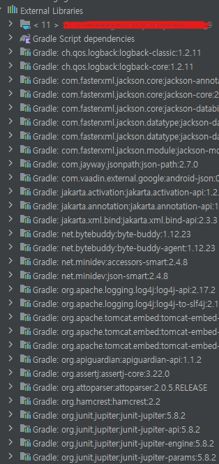그런데 실제 External Libraries 라이브러리에 들어가보면 라이브러리가 많이 있음을 알 수 있습니다.